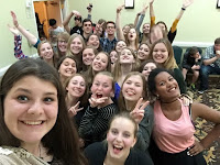Oh well so we got there and we had really good food and the whole squad sat together ! As we all ate our brownies Mathilde started with her funny sentences, in case you don't know she always does or says things (which could have a different meaning) without thinking about it. So she said one thing and the whole table bursted in a loud laugh, she almost choke on her food ! Well we still love you tilde ! One highlight of the banquet was the Awards, the day before we could nominate different people for awards in different catagories. Almost the whole squad one something, guess what I won ?